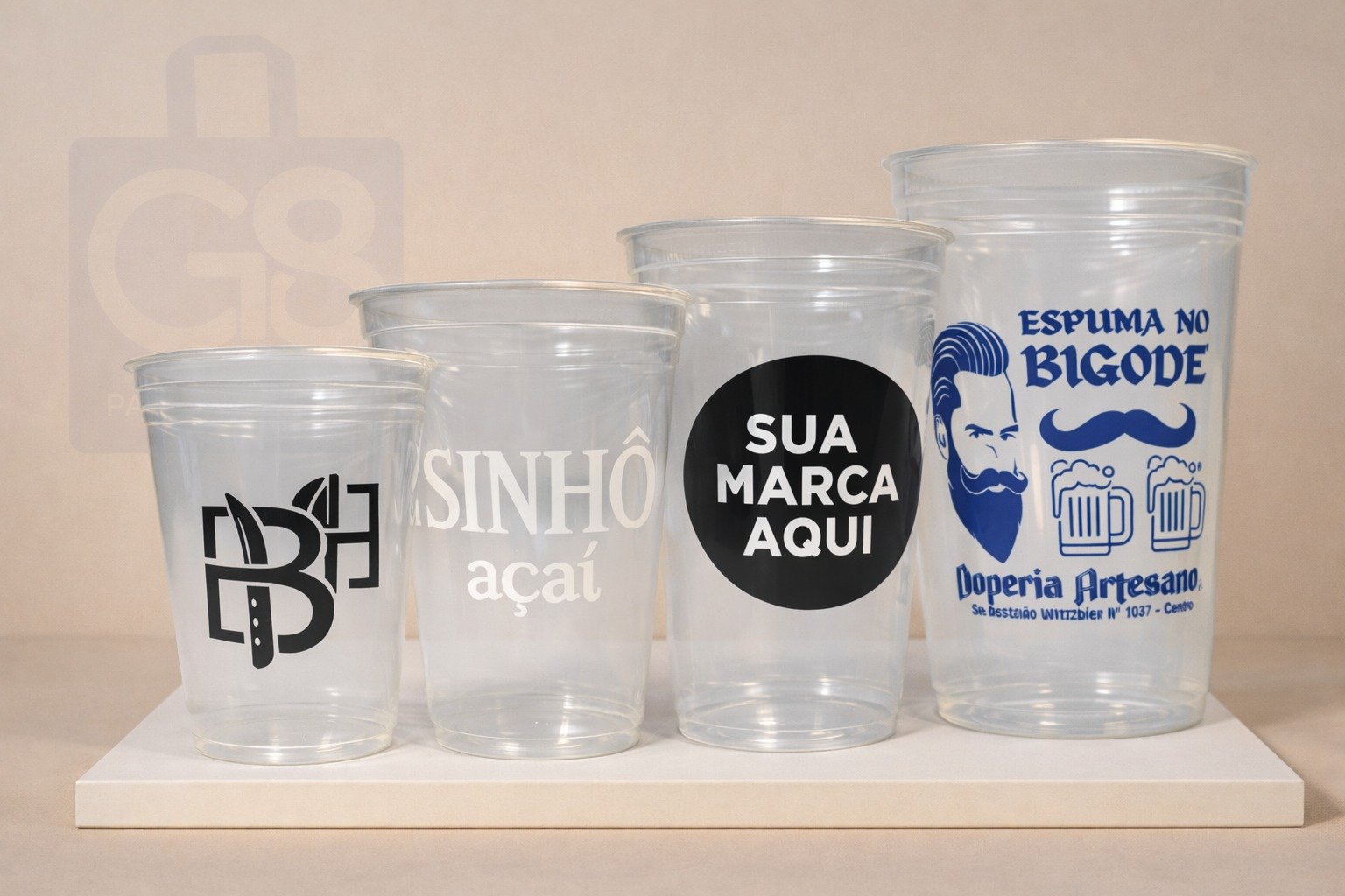 Copos com impressão silk screen profissional e acabamento de primeira linha.